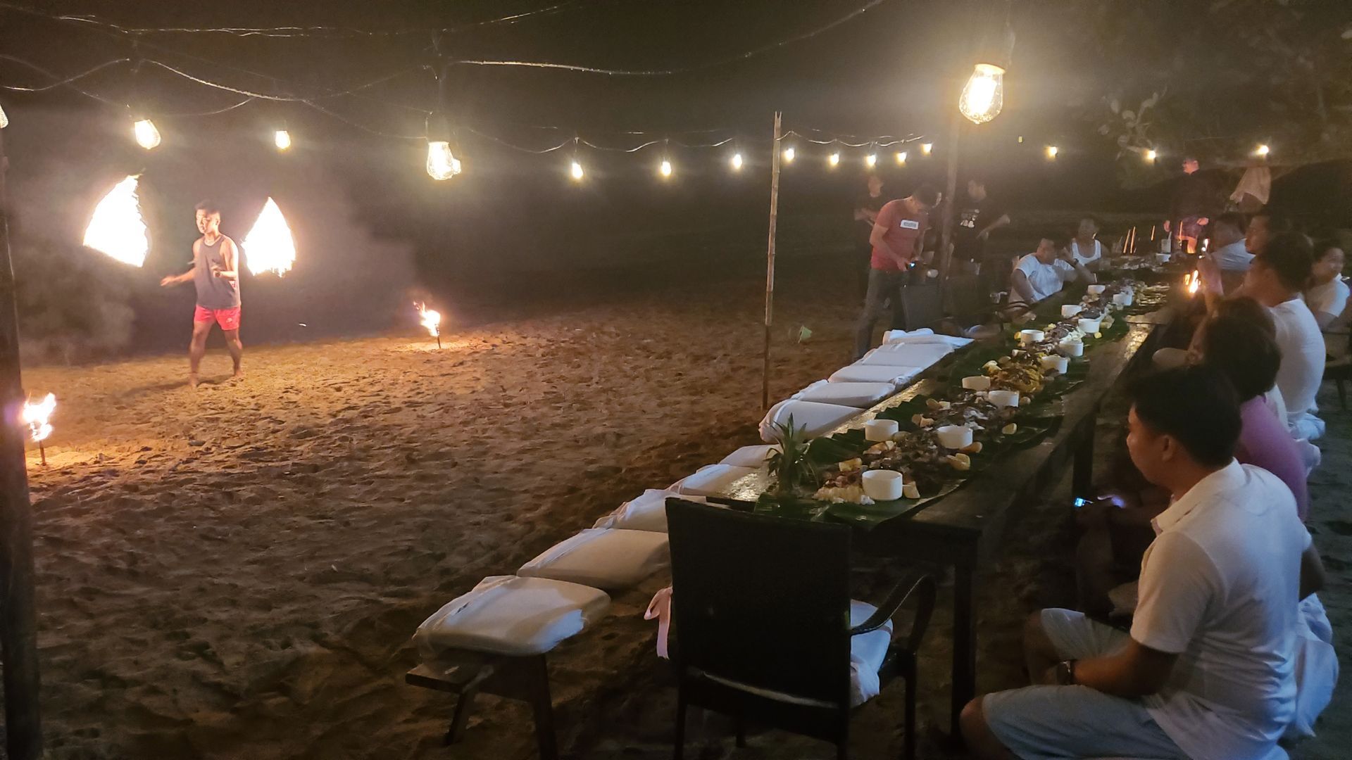 "Toes in the sand, glimmering candles and tiki torches make for an incredibly romantic evening."